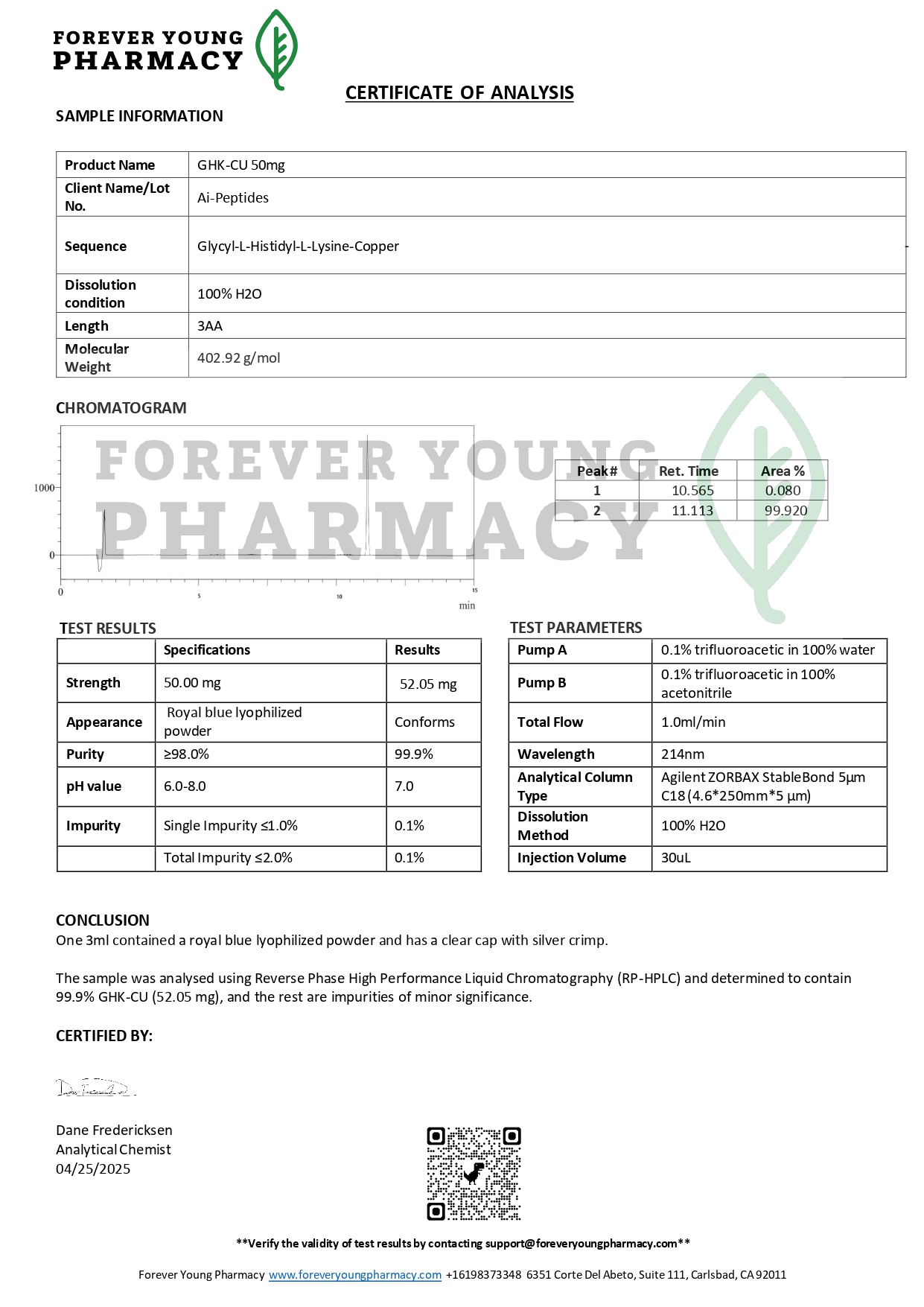 Loren Pickart, Ph.D is being referenced as one of the leading scientists involved in the research and development of GHK-Cu. In no way is this doctor/scientist endorsing or advocating the purchase, sale, or use of this product for any reason. There is no affiliation or relationship, implied or otherwise, between Peptide Sciences and this doctor. The purpose of citing the doctor is to acknowledge, recognize, and credit the exhaustive research and development efforts conducted by the scientists studying this peptide. Loren Pickart, Ph.D is listed in [1] [3] and [8] under the referenced citations.