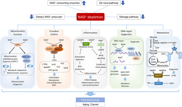 Furthermore, insufficient NAD+ hinders DNA repair processes, leading to genomic instability and a higher risk of mutations and cancers. The decline in NAD+ also affects mitochondrial function, potentially resulting in neurodegenerative diseases and cognitive decline due to reduced brain cell protection and maintenance. Metabolic health can be compromised as well, increasing the risk of conditions such as obesity, diabetes, and cardiovascular diseases. Overall, maintaining adequate NAD+ levels is crucial for sustaining energy production, cellular health, and longevity, and its deficiency can have wide-ranging negative impacts on overall health and well-being.
